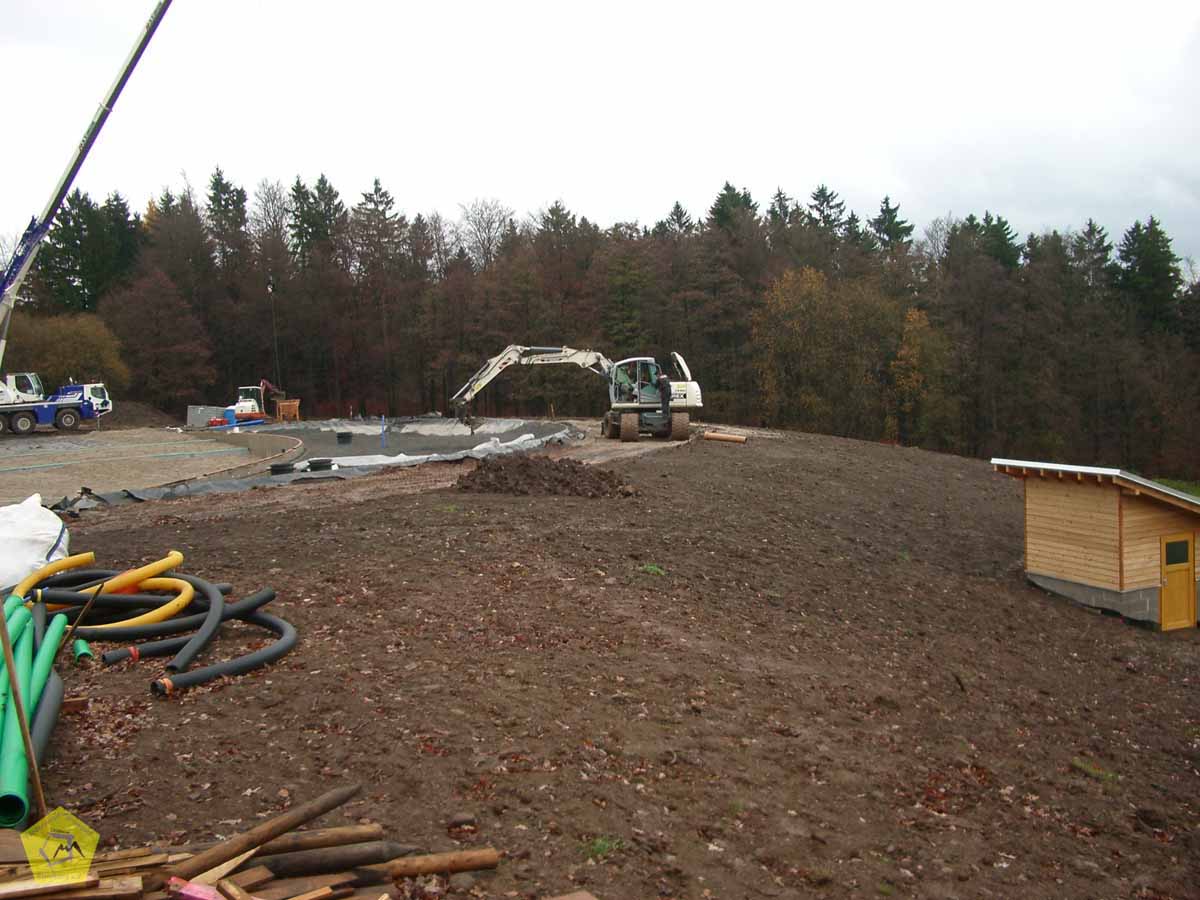 Im Sommer 2009 konnten zahlreiche Planungs- und Genehmigungsschritte abgeschlossen werden. Bodenuntersuchungen und Wasseranalysen waren Grundlage für die Einreichung des Bauantrages. Auch eine landschaftsschutzrechtliche Genehmigung war einzuholen. Diese wurde mit Datum vom 30.07.2009 erteilt. Die Baugenehmigung erhielten wir mit Datum vom 06.08.2009.