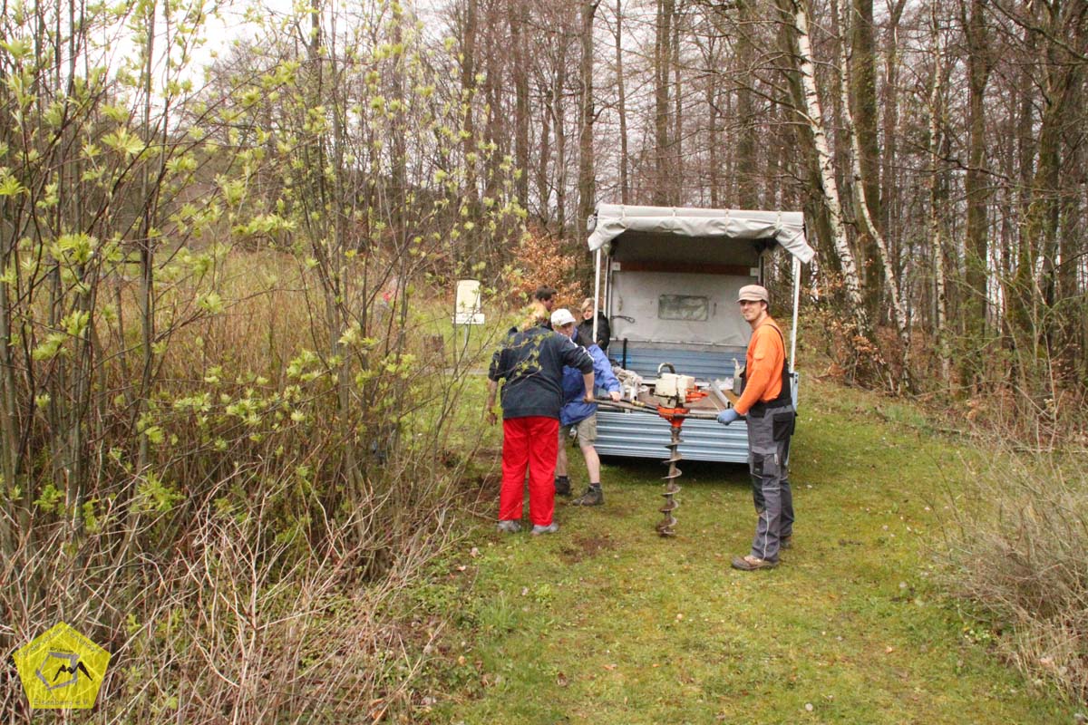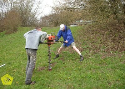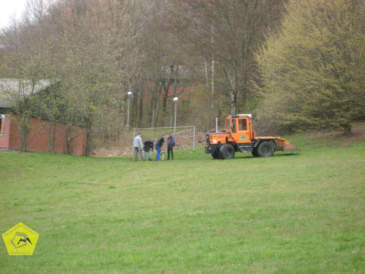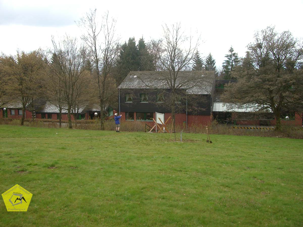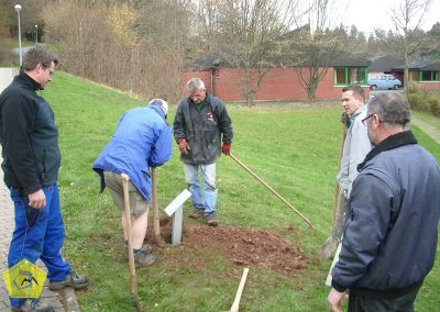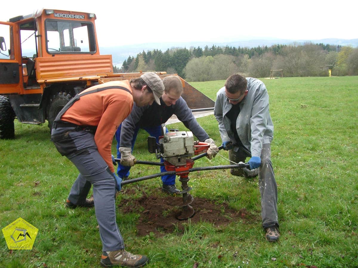 Die Erdarbeiten wollte der Förderverein durch Eigenleistung erbringen und so wurden bereits im Frühjahr 2012 bei dem ersten Workcamp die Fundamente für die Körbe und Hinweisschilder bei den Abwurfpunkten, ausgehoben und gegossen. In den folgenden Tagen wurden die Körbe durch Mitarbeiter des Feriendorfes eingesetzt.