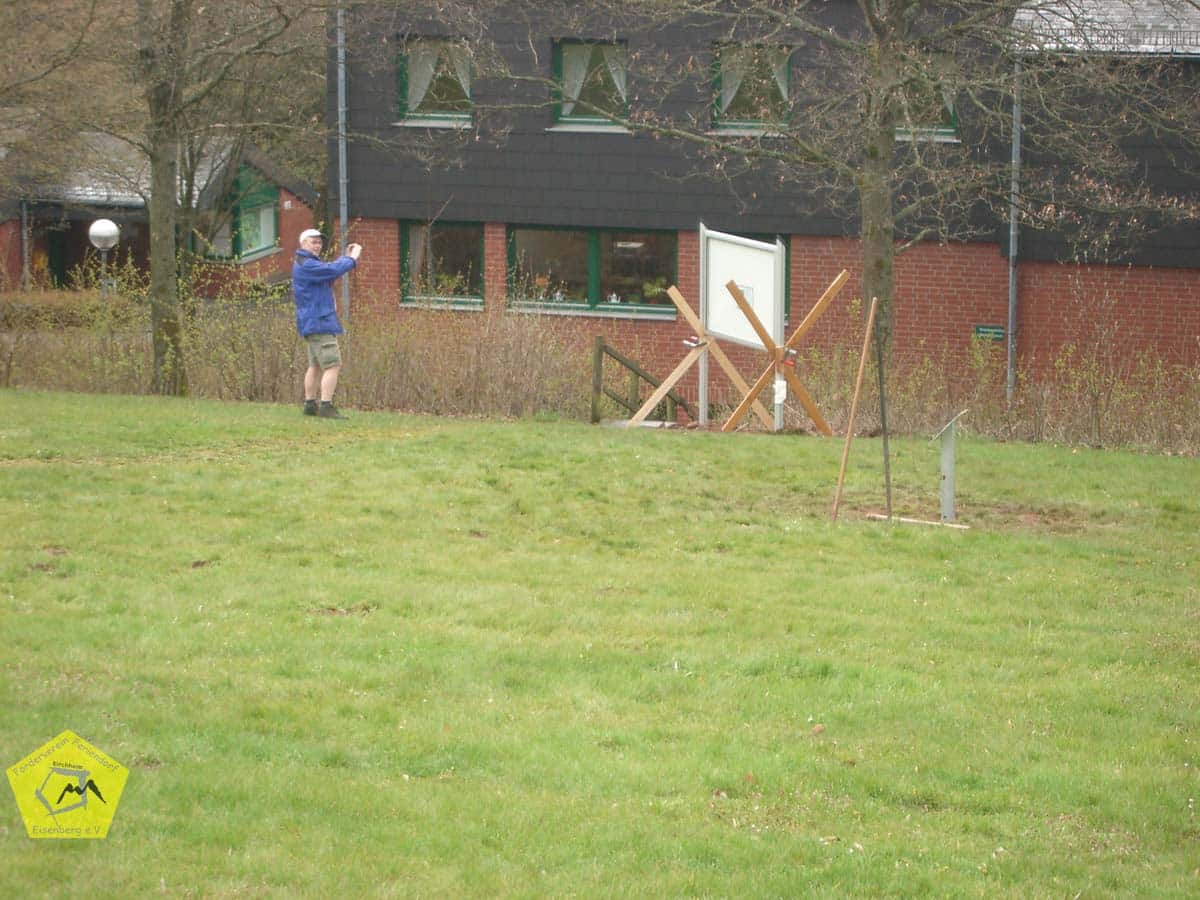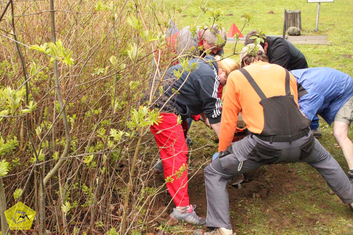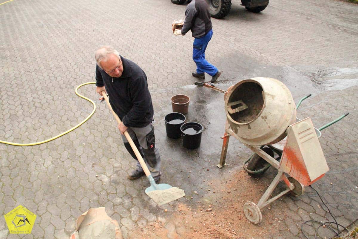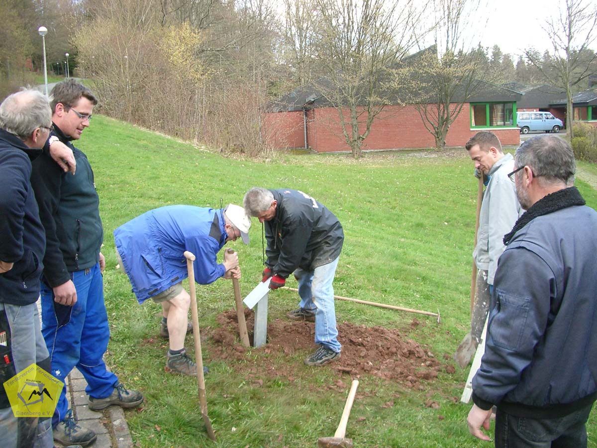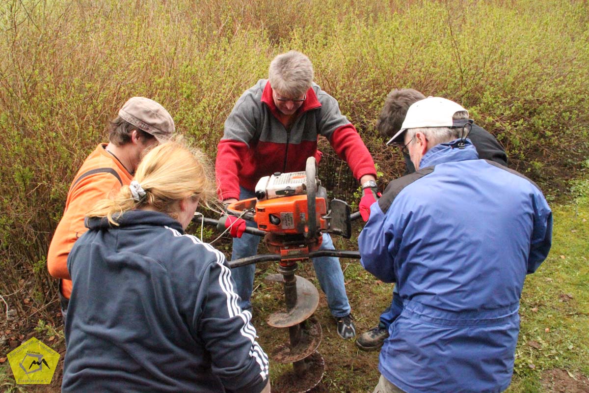 Die Erdarbeiten wollte der Förderverein durch Eigenleistung erbringen und so wurden bereits im Frühjahr 2012 bei dem ersten Workcamp die Fundamente für die Körbe und Hinweisschilder bei den Abwurfpunkten, ausgehoben und gegossen. In den folgenden Tagen wurden die Körbe durch Mitarbeiter des Feriendorfes eingesetzt.