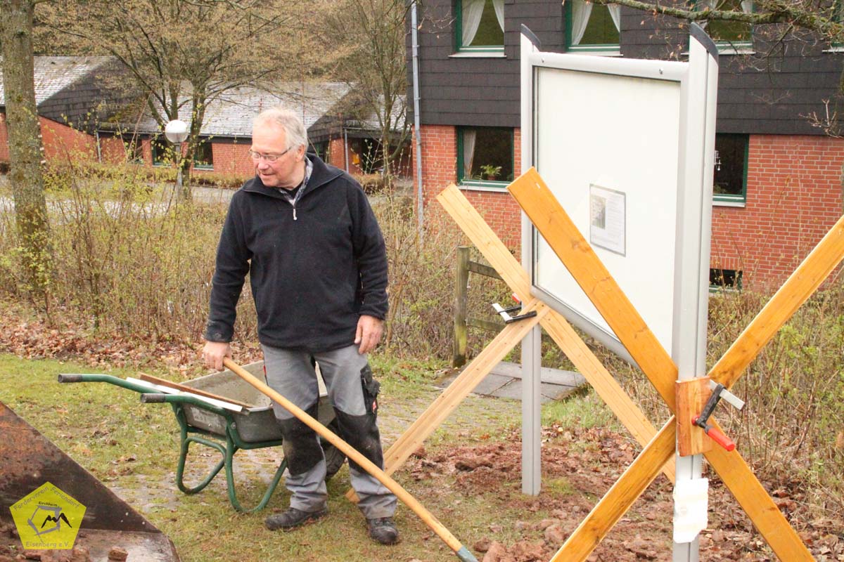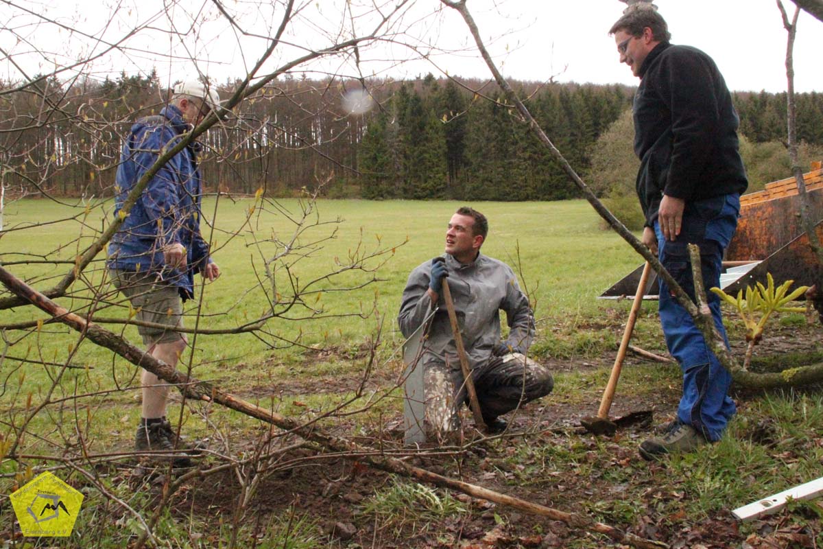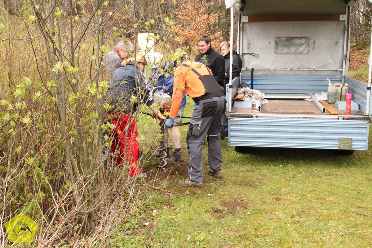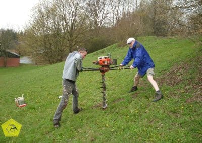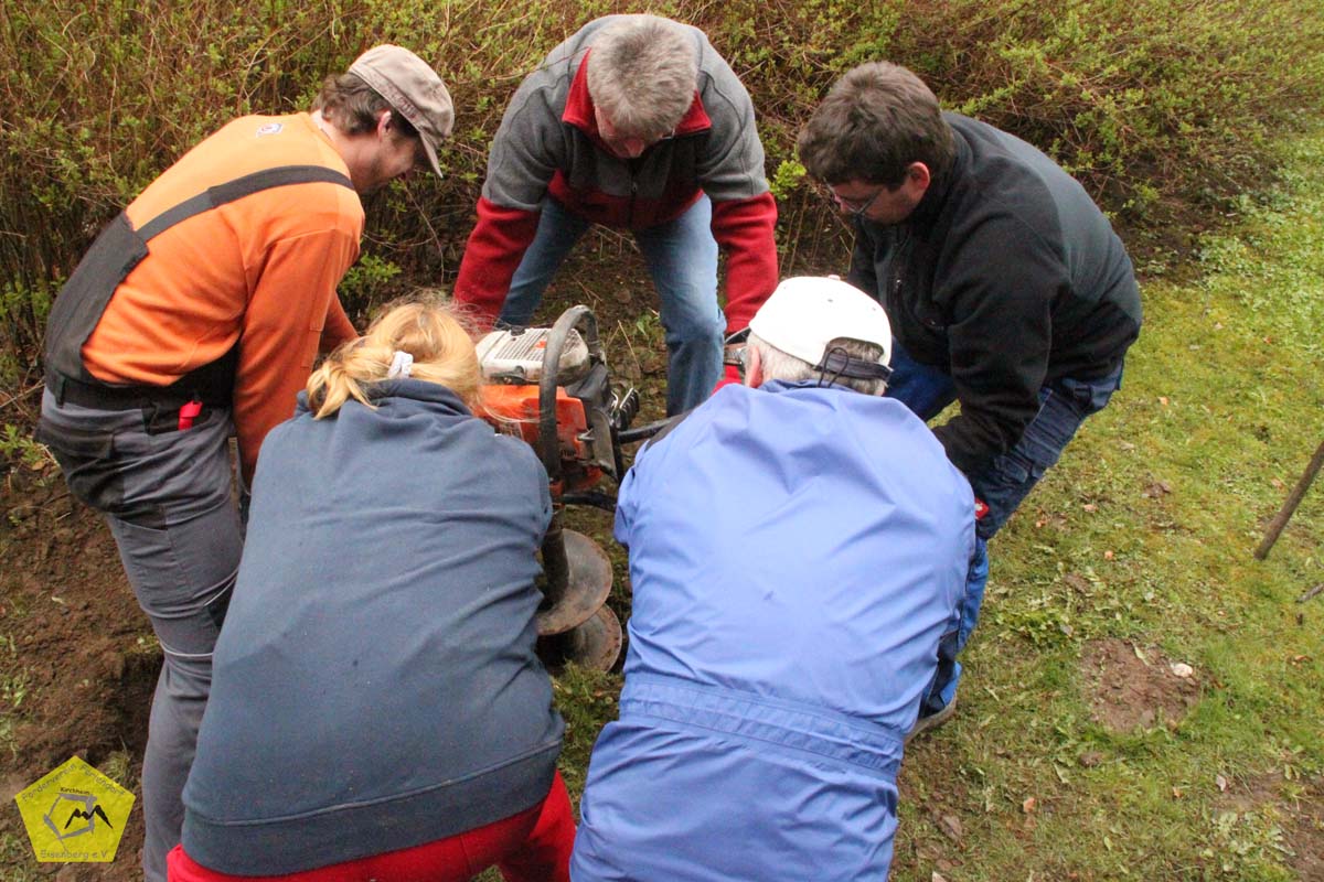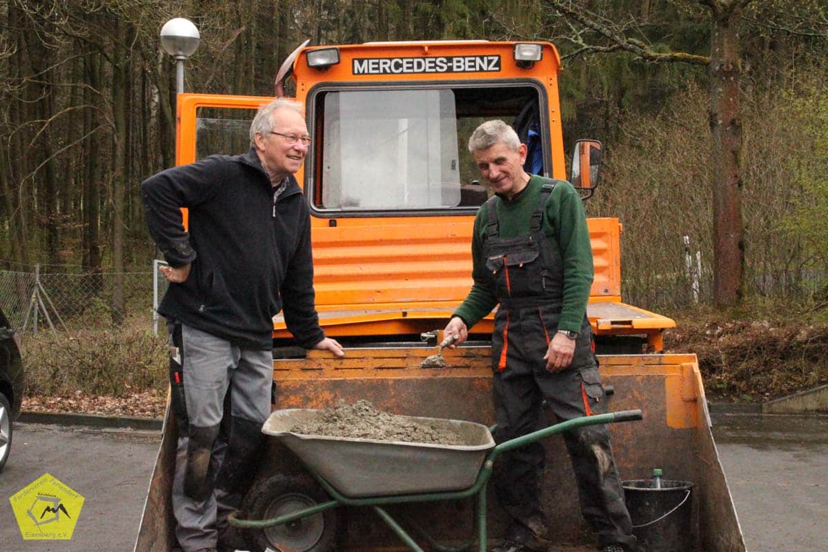 Die Erdarbeiten wollte der Förderverein durch Eigenleistung erbringen und so wurden bereits im Frühjahr 2012 bei dem ersten Workcamp die Fundamente für die Körbe und Hinweisschilder bei den Abwurfpunkten, ausgehoben und gegossen. In den folgenden Tagen wurden die Körbe durch Mitarbeiter des Feriendorfes eingesetzt.