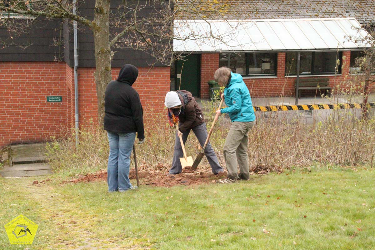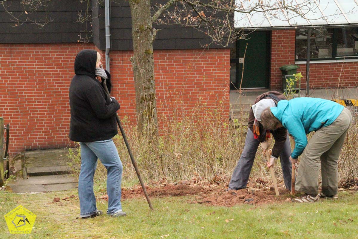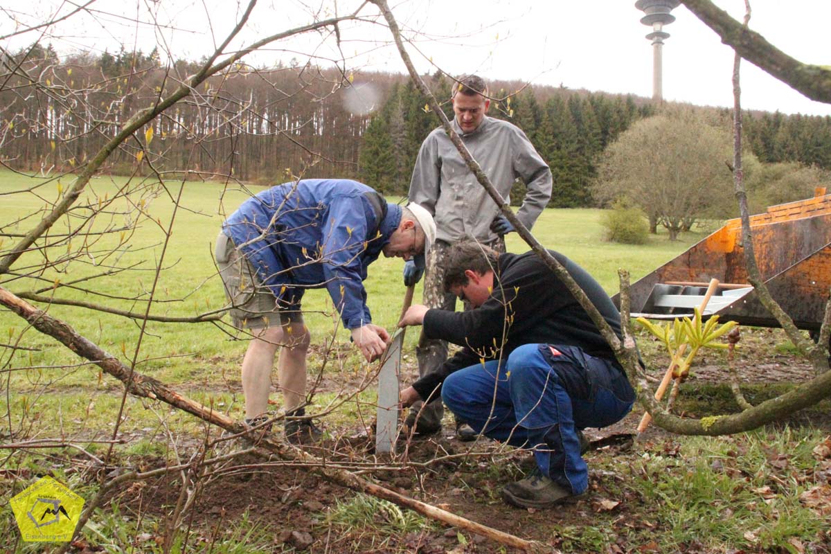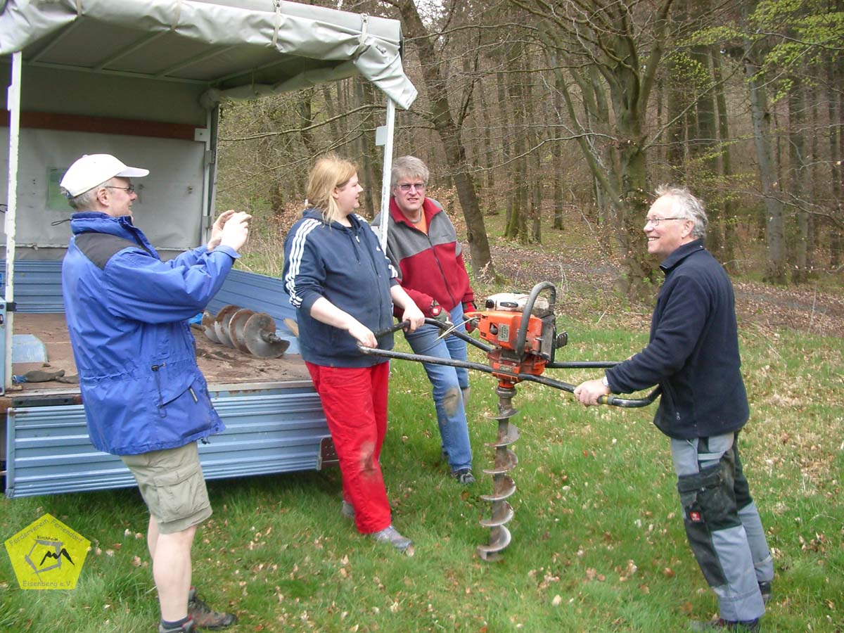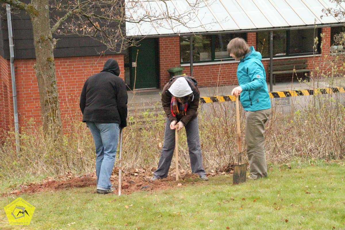 Die Erdarbeiten wollte der Förderverein durch Eigenleistung erbringen und so wurden bereits im Frühjahr 2012 bei dem ersten Workcamp die Fundamente für die Körbe und Hinweisschilder bei den Abwurfpunkten, ausgehoben und gegossen. In den folgenden Tagen wurden die Körbe durch Mitarbeiter des Feriendorfes eingesetzt.