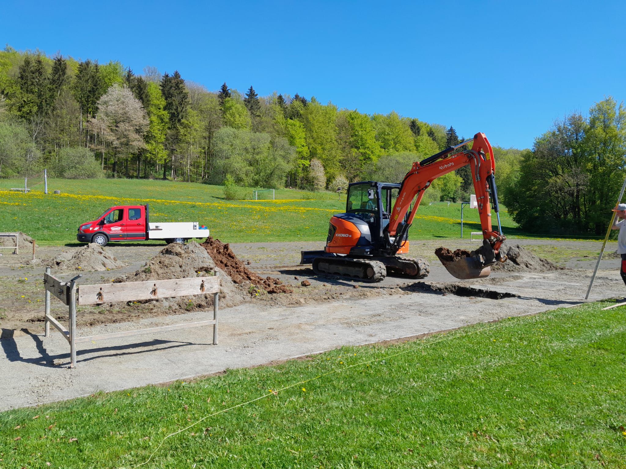 Der neue Soccercourt wird eine Fläche von 30 x 15 Metern bieten und für verschiedene Ballsportarten nutzbar sein. Neben Fußball können hier auch Volleyball und Basketball gespielt werden, wofür er noch so alles genutzt wird – wir sind gespannt. Ziel ist es, den Court im Juli dieses Jahres einzuweihen.